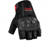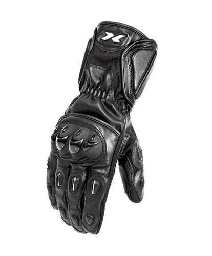 Tecido couro e poliéster; Forração interna; Ajuste em velcro e elástico; Proteção rígida; Alta resistência a impactos e abrasões; Proteção nas articulações dos dedos; Costuras duplas reforçadas.