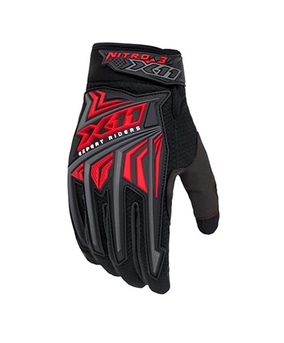 Design agressivo; Tecido transpirável; Ajuste em velcro emborrachado nos punhos; Borracha de reforço frontal; Reforço na palma e polegar; Costura dupla no punho.